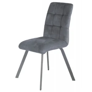 CHAISE ASCOT PIED METAL GRIS MAT ASSISE TISSU VELOURS BLEU GRIS 45 X 62 X 89 CM