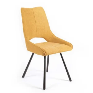 CHAISE GABRIEL PIEDS ANGULAIRE METAL NOIR ASSISE JAUNE TISSU 52X63X94 CM
